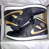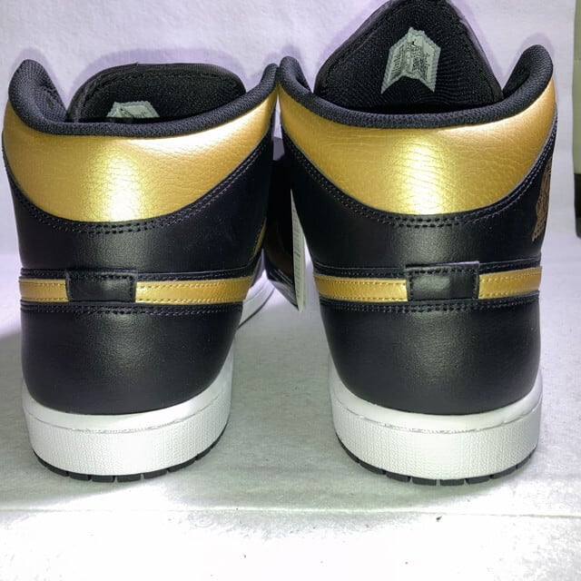 nike air jordan 1 mid black / metallic gold - white size15 33cm