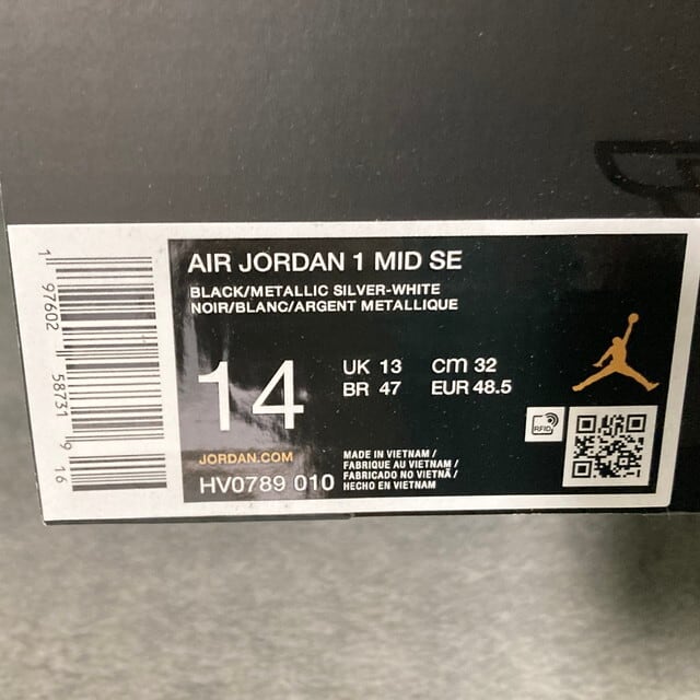 nike air jordan 1 mid se black / metallic silver - white size14 32cm