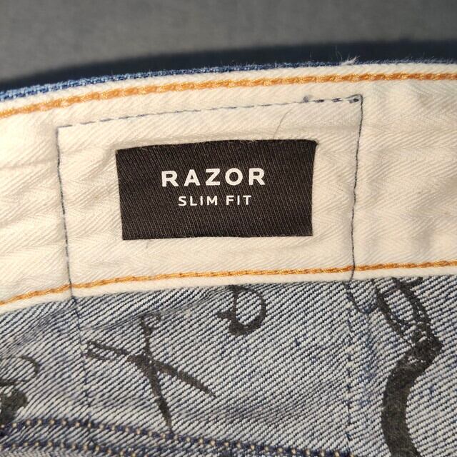 denham デンハム RAZOR レザー SLIM FIT スリムフィット ジーンズ デニム 30インチ ブルー ヒゲ ハチノス 色落ち W30×L32 綿100% 革パッチ 黒パッチ
