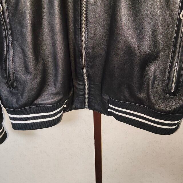 レザージャケット レザーパーカー 革ジャン ライダースジャケット 本革 羊革 最上級シープスキン イタリアンレザー 3本線 アームライン フード付き YKKジップ 黒 白 ブラック ホワイト メンズ Mサイズ