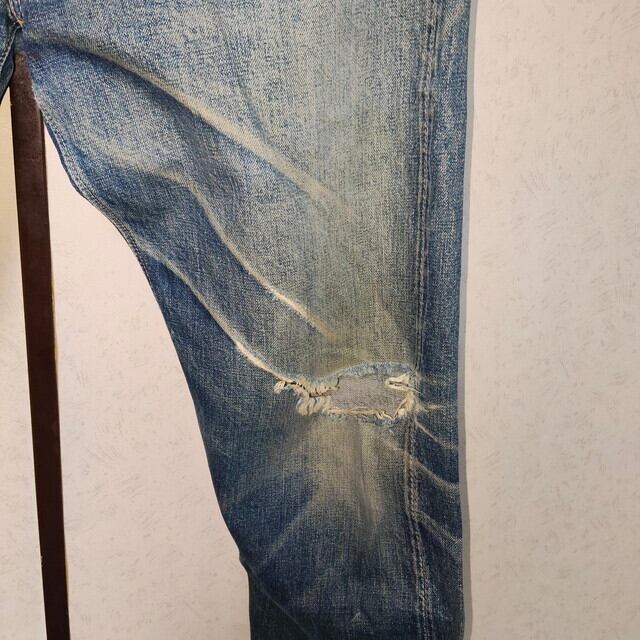 裾部分の擦れ、膝部分の破れ、ポケット部分の破れ等、ダメージが見られます。