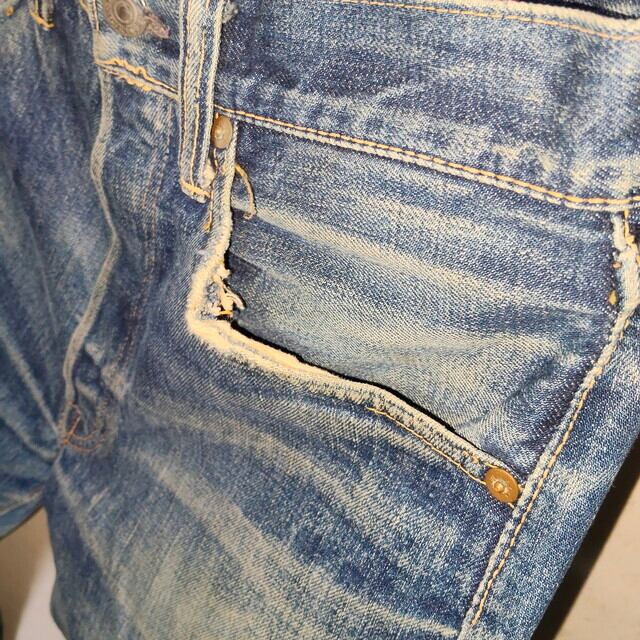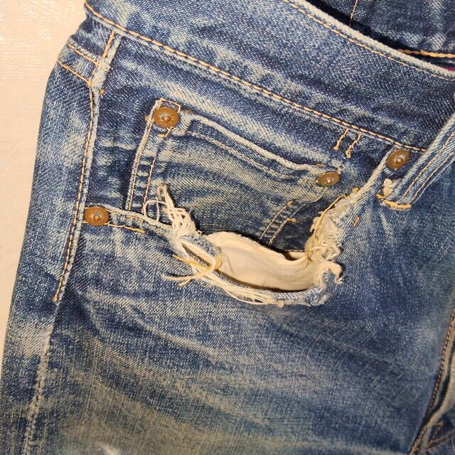 股部分の破れはありませんので、普通に使用することは可能ですが、バックポケットは補修しなければ物は入れられないかと思います。