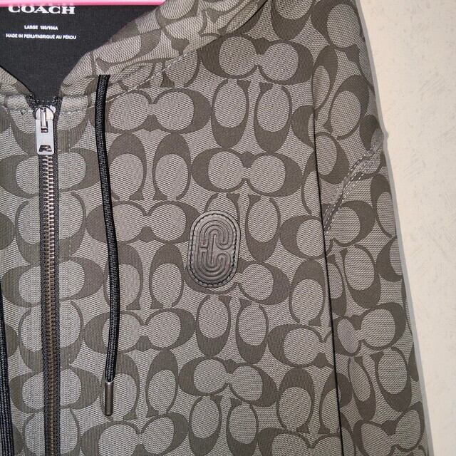 COACHのシグネチャーパターンが施されたジップアップパーカーです。