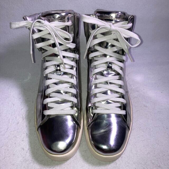 ド派手なメタリックシルバーのハイカットスニーカーです!