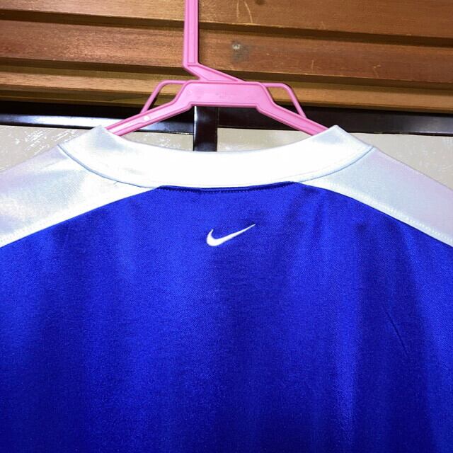 nike ナイキ 00s 2002年 y2k ブラジル代表 アウェイ プラクティスシャツ ゲームシャツ トレーニングユニフォーム メッシュ ジャージ ブルー ホワイト メンズ Lサイズ
