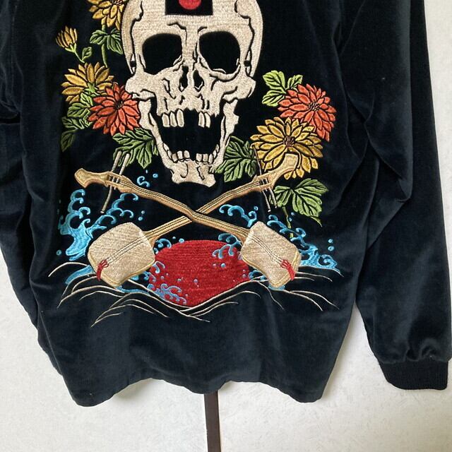 刺繍 髑髏 ドクロ しゃれこうべ 三味線 松 菊 JAPAN 日本 和柄