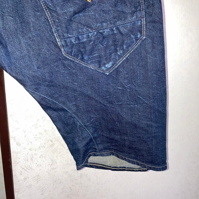 g-star raw ジースター ロー arc 3d short 3Dショート ハーフパンツ ショートパンツ ショートデニム ジーンズ デニム 立体裁断 ブルー インディゴ 濃紺 ボタンフライ チェーンステッチ 薄手 ダメージ加工 30インチ