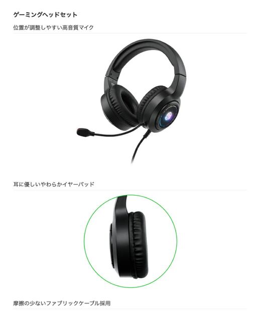 【ゲーミングヘッドセット】位置が調整しやすい高音質マイク/耳に優しいやわらかイヤーパッド/摩擦の少ないファブリックケーブル採用