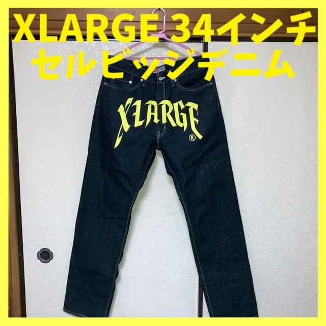 XLARGE エクストララージ ペイント ジーンズ セルビッジデニム 34インチ