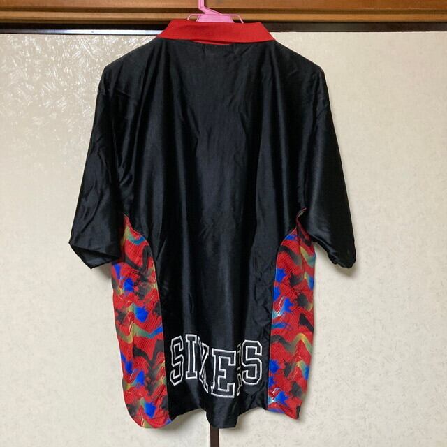 チャンピオン シクサーズ 半袖シャツ ハーフジップ 黒 赤 メンズ Lサイズ