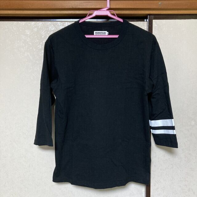 桃太郎ジーンズ ジャパンブルー ロンT 7分袖 Tシャツ 出陣 袖ライン 黒 ブラック 綿100% 日本製 Made in Japan メンズ Sサイズ