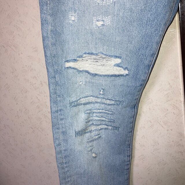 全体的にかなりダメージ加工が施された一本になりますが、元々のダメージ以外に特筆すべき大きな傷や汚れは見られないかと思います。
