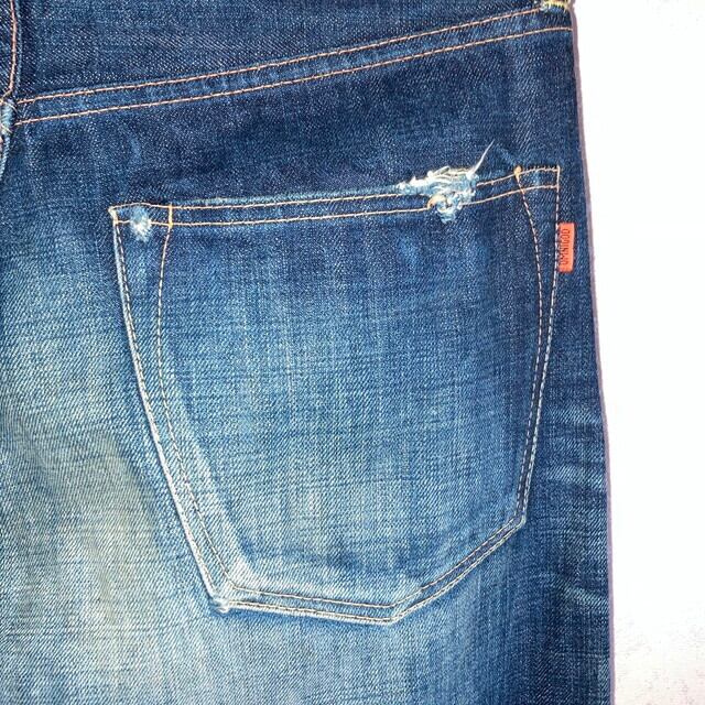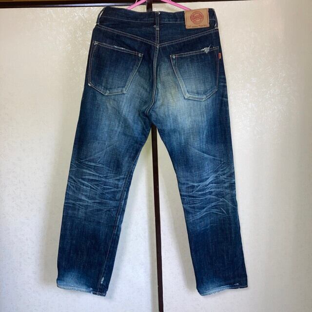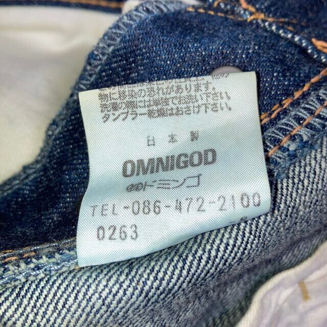 omnigod オムニゴッド ドミンゴ ダメージジーンズ デニム セルビッチ セルビッヂ 赤耳 フルレングス 裾上げなし チェーンステッチ ボタンフライ 紙パッチ 綿100% W29×L30