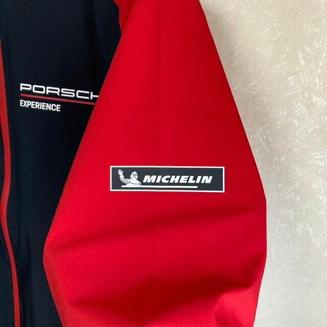 porsche ポルシェ ドライバーズ セレクション mobil1 モービル1 michelin ミシュラン ウーブンジャケット シェルジャケット レッド ホワイト ブラック 防風 防水 フード付き メンズ XSサイズ