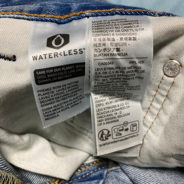テーパードレッグ 裾上げなし シングルステッチ 紙パッチ 赤タブ カンボジア製 ボタン裏刻印5019