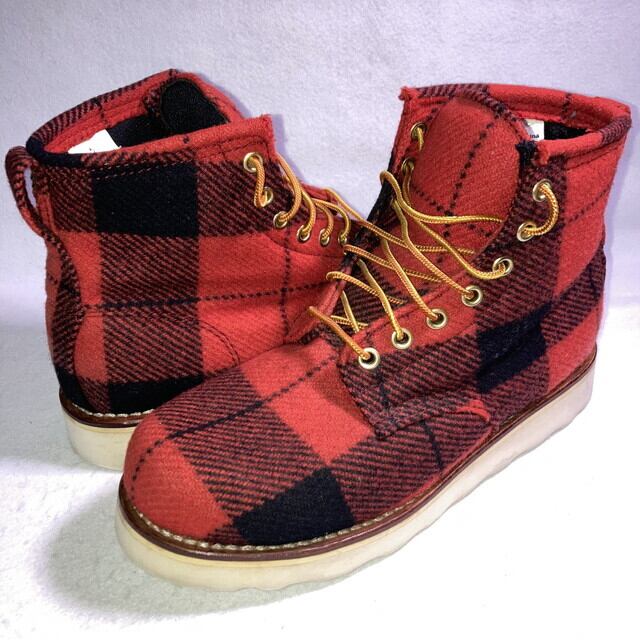 hysteric glamour foot wear ヒステリックグラマー フットウェア ワークブーツ レースアップブーツ レッド ブラック チェック柄 サイズ7(25cm)