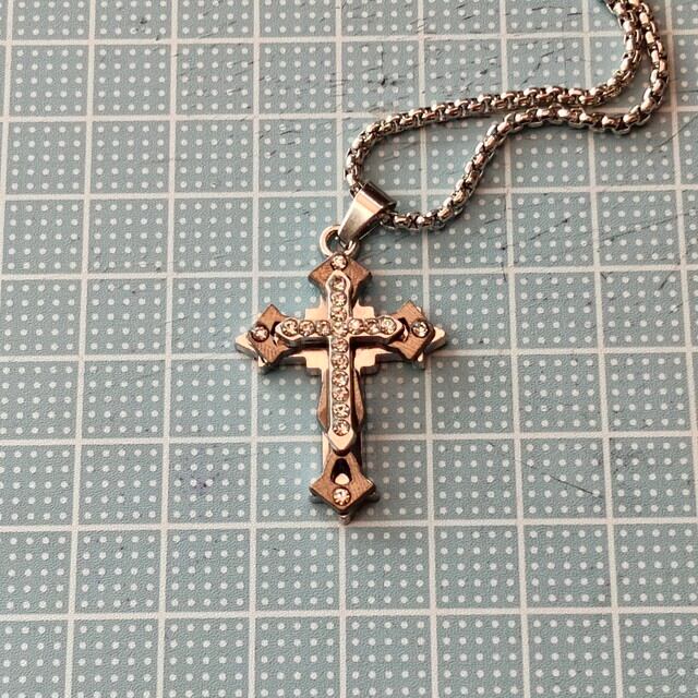 十字架 クロス チタン ラインストーン ジルコニア CZダイヤモンド 鋼 ネックレス ペンダント チェーン 70cm メンズ レディース ユニセックス 新品未使用品