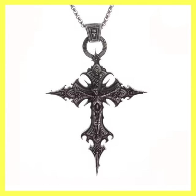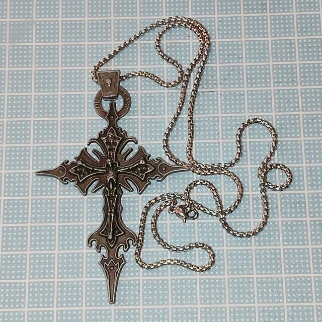 ゴシック 磔刑 磔 スカル クロスペンダント ネックレス アクセサリー 十字架 カトリック 祈りのジュエリー 骸骨 スケルトン パンク メンズ レディース ユニセックス 新品未使用品