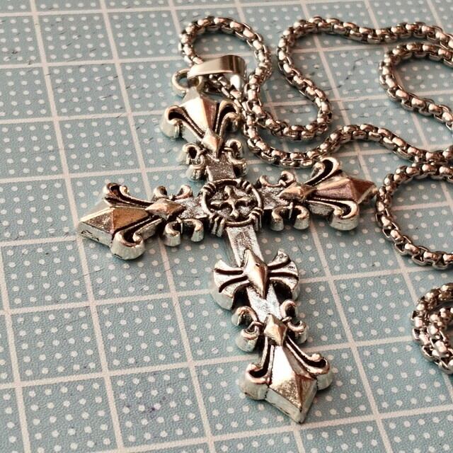 クロスデザイン 十字架 ネックレス ペンダント ステンレス鋼 ヴィンテージシルバーカラー パンク ストリート 60cm メンズ レディース ユニセックス 新品未使用品