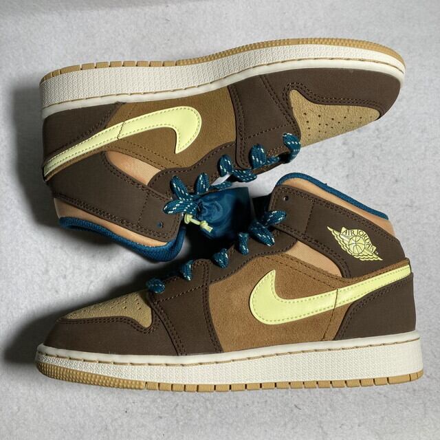 エアジョーダン1 MID ブラウン イエロー ホワイト グリーン 23cm