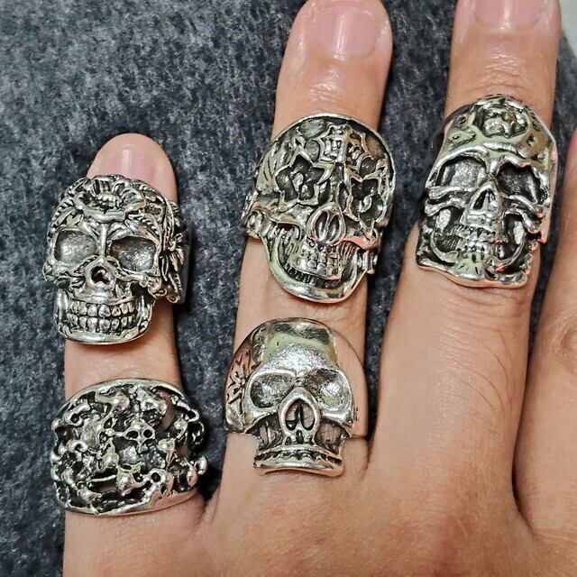 指輪 デザインリング ドクロ 骸骨 スカル スケルトン ファッションリング アクセサリー パンク ロック メキシカン バイカー ゴシック レトロ ヒップホップ 迫力 重厚 メンズ レディース ユニセックス 新品未使用品