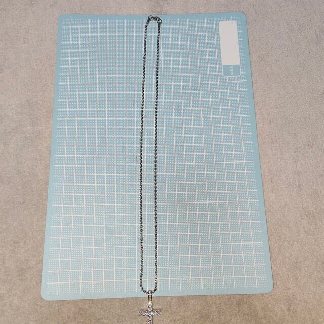 高級キュービックジルコニアクロスペンダントネックレス CZダイヤモンド クロス ツイストチェーンロングネックレス ブリンブリン 十字架 シルバー 60cm メンズ レディース ユニセックス ギラギラ 新品未使用品