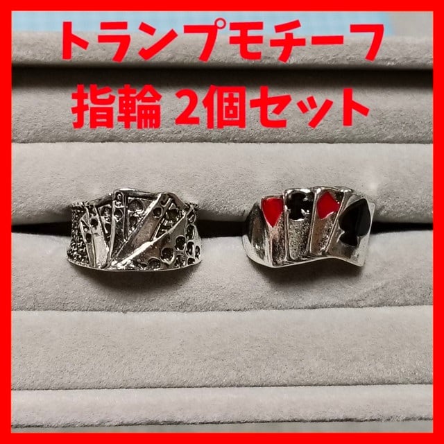 指輪 デザインリング トランプデザイン スペード ハート ダイヤ クローバー ファッションリング アクセサリー パンク ロック メキシカン バイカー ゴシック レトロ ヒップホップ メンズ レディース ユニセックス 新品未使用品 2個 セット売り