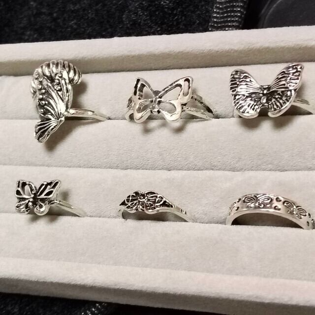指輪 デザインリング バタフライデザイン 蝶モチーフ ファッションリング アクセサリー パンク ロック メキシカン バイカー ゴシック レトロ ヴィンテージ ヒップホップ レディース メンズ ユニセックス 6個 まとめ売り①