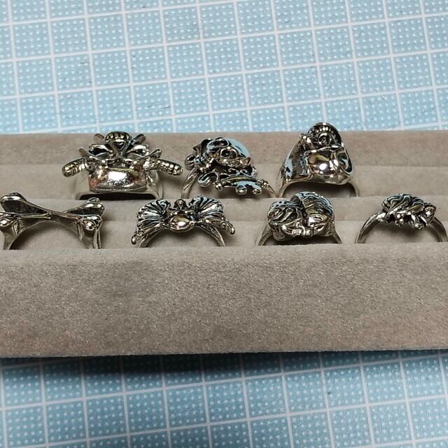 指輪 デザインリング ドクロ 骸骨 スカル スケルトン 海賊 パイレーツ 心臓 ハート 脳 ブレイン 人体 ファッションリング アクセサリー パンク ロック バイカー ゴシック レトロ ヴィンテージ アメカジ ヒップホップ メンズ レディース ユニセックス 新品未使用品 7個 まとめ売り①