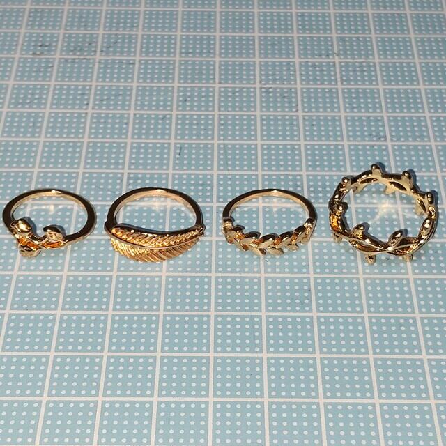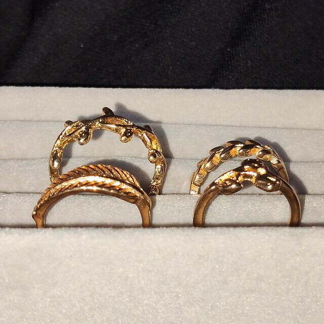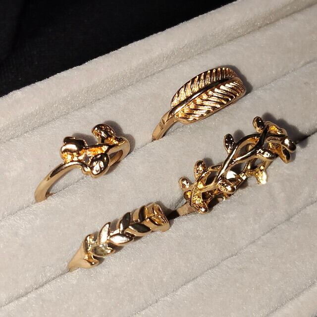 指輪 デザインリング リーフ 葉っぱ ゴールド ファッションリング アクセサリー パンク ロック バイカー ゴシック レトロ ヴィンテージ ヒップホップ レディース メンズ ユニセックス 新品未使用品 4個 まとめ売り①