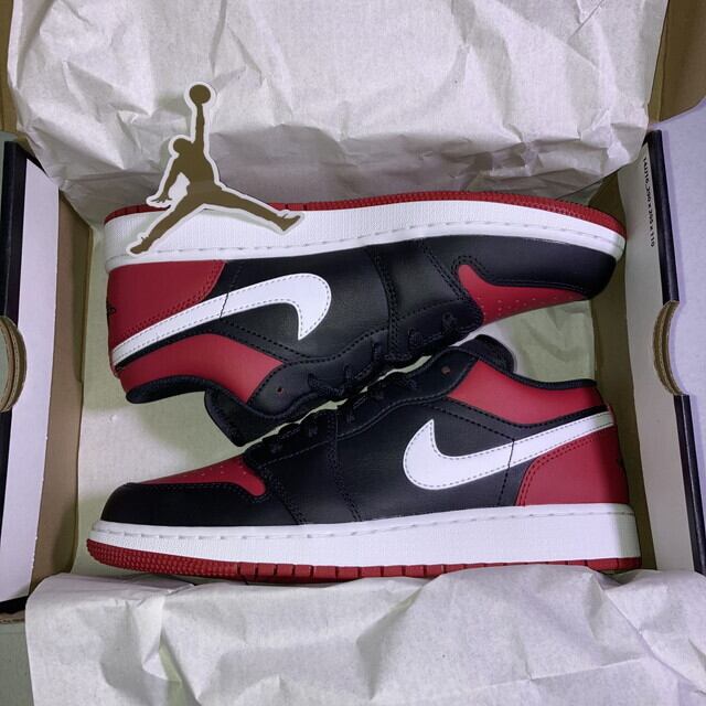 nike air jordan 1 low gs black / gym red - white size6.5Y 24.5cm