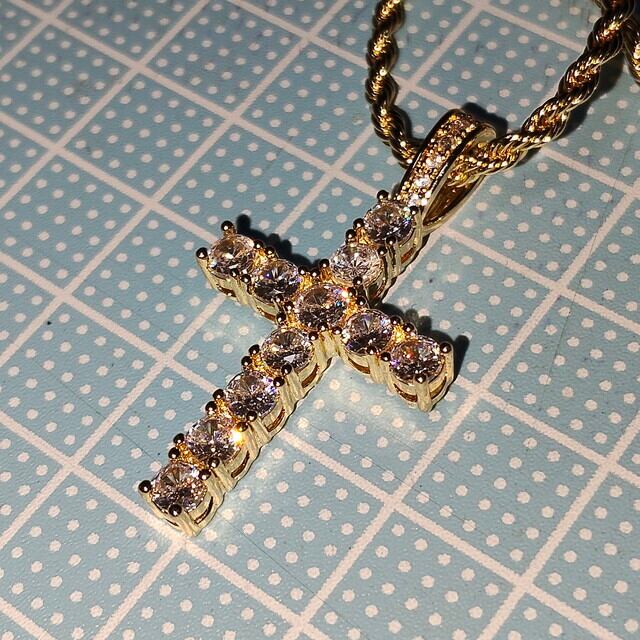 クロスラインストーンネックレス キュービックジルコニア CZダイヤモンド ペンダント クリスチャンジュエリー ブリンブリン ギラギラ クロス 十字架 ゴールド ツイストチェーン ロープチェーン ストリート ヒップホップ 60cm メンズ レディース ユニセックス 新品未使用品