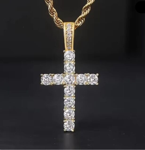 クロスラインストーンネックレス ジルコニア CZダイヤモンド ペンダント クリスチャンジュエリー ブリンブリン ギラギラ クロス 十字架 ゴールド ツイストチェーン ストリート ヒップホップ 60cm メンズ レディース ユニセックス 新品未使用品
