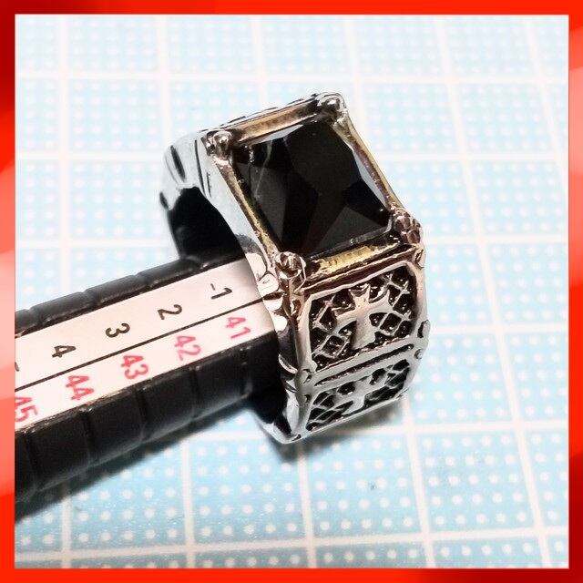 316Lステンレス サージカルステンレス ブラックストーン クロス デザイン リング 指輪 ファッションリング アクセサリー パンク ロック ヒップホップ メンズ 黒 ブラック 銀 シルバー 22号 新品未使用品 訳あり