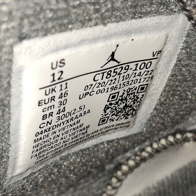 エアジョーダン6 レトロ 白 ホワイト 灰色 グレー 黒 ブラック 30cm