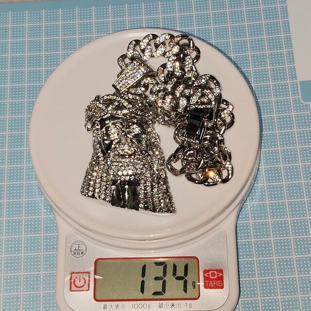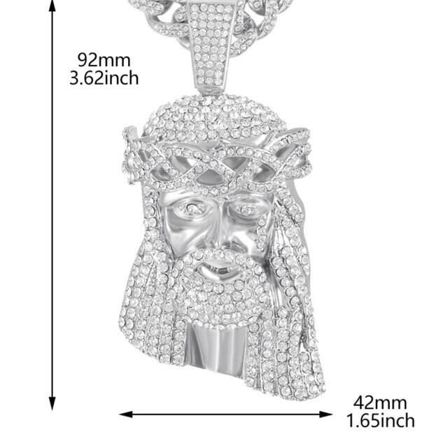 キリスト ジーザス ブリンブリン ギラギラ シルバー マイアミキューバンリンク ジルコニア CZダイヤモンド ラインストーン ネックレス ペンダント ヒップホップ ラッパー パンク ストリート 13mm×45cm メンズ レディース ユニセックス 新品未使用品
