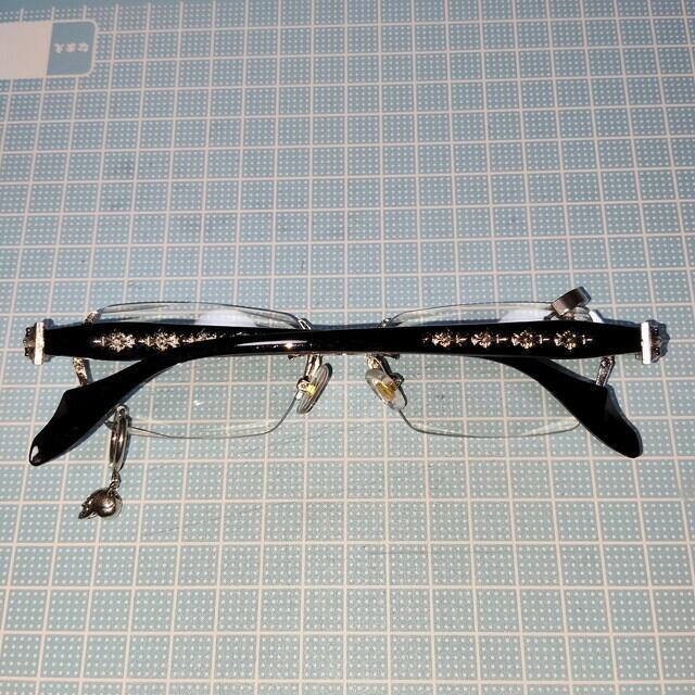 ピアスサングラス ドクロチャーム クロスデザイン 伊達メガネ フチなし リムレス フレームレス スクウェア ブラック 黒 メンズ レディース ユニセックス 新品未使用品