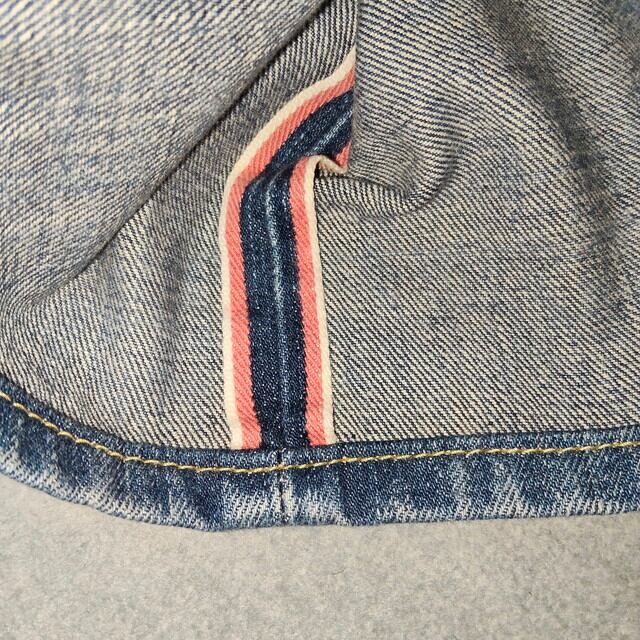 太めでヴィンテージ感溢れるシルエットに、腰部分に付いたシンチバック、裾部分とウォッチポケット部分にチラりと見える赤耳が特徴。