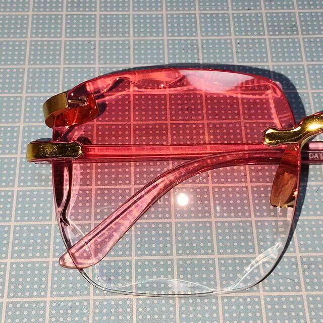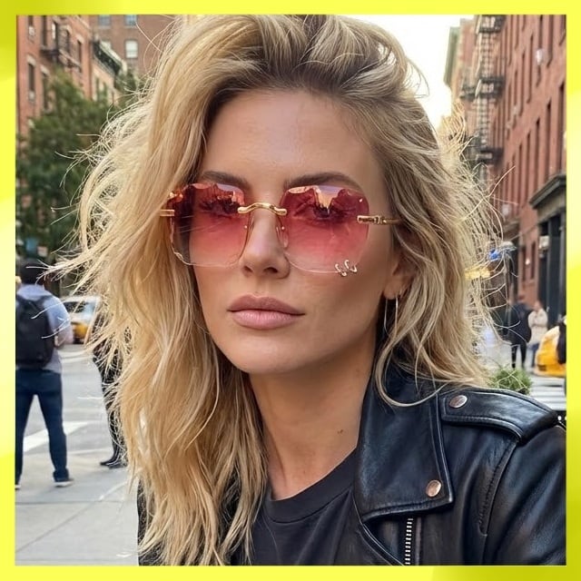ピアスサングラス スクエア フレームレス フチなし ピンク グラデーションレンズ ゴールド 金 オーバーサイズ メンズ レディース ユニセックス 新品未使用品