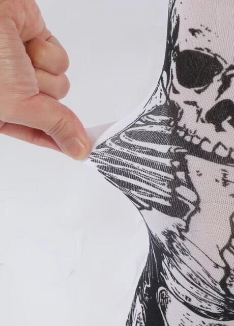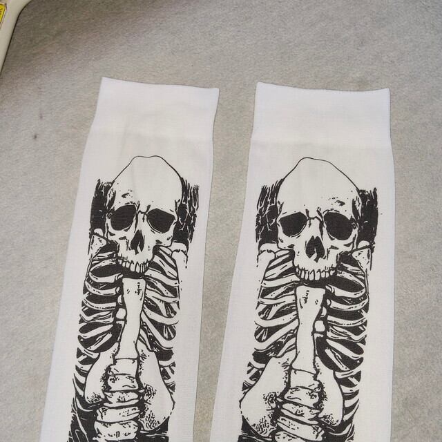 スカル スケルトン ドクロ 骸骨 髑髏 デザイン プリント ストッキング オーバーニーソックス ハイソックス レトロ ストリート ヒップホップ カジュアル コスプレ 2000年代 Y2K 可愛い 原宿系 ゴスロリ 伸縮性 伸びる 白 ホワイト フリーサイズ