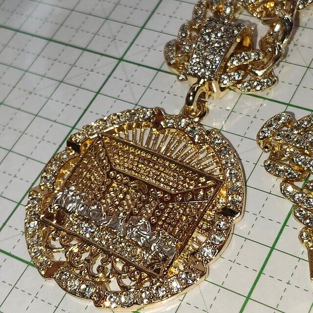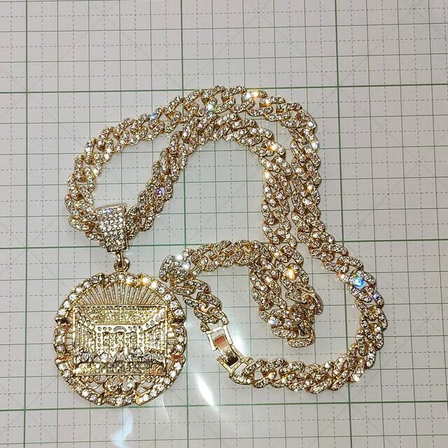 最後の晩餐 レオナルド・ダヴィンチ メダル型 ブリンブリン ギラギラ ゴールド マイアミキューバンチェーン マイアミキューバンリンク ジルコニア CZダイヤモンド ラインストーン ネックレス ペンダント ヒップホップ ラッパー パンク ストリート 9mm×50cm メンズ レディース ユニセックス 新品未使用品