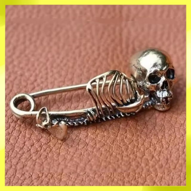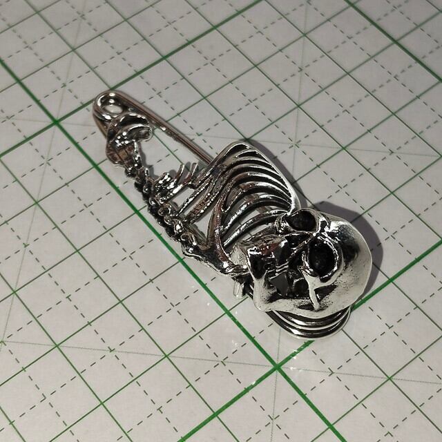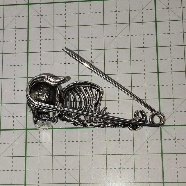 ドクロ 髑髏 スカル スケルトン 骸骨 ブローチ 安全ピン シルバー 新品未使用品