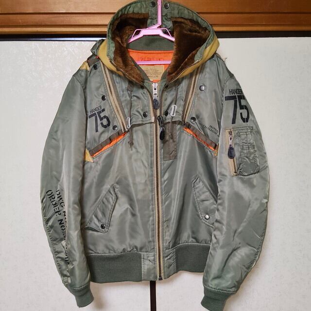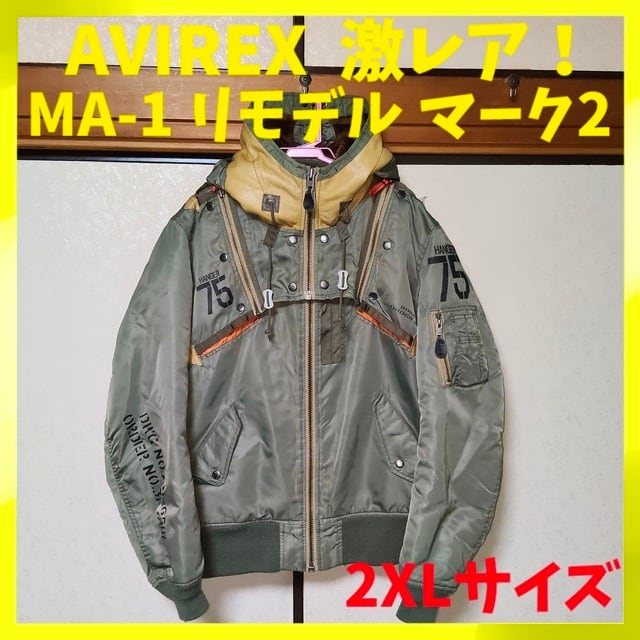 AVIREX アヴィレックス フライトジャケット MA-1 リモデル マーク2 ミリタリー フード 牛革 グリーン 緑 メンズ 2XLサイズ