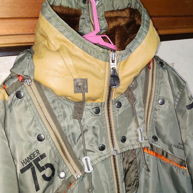avirex アヴィレックス フライトジャケット MA-1 remodel リモデル mark2 マーク2 ミリタリー フード レザー 牛革 本革 セージグリーン メンズ 2XL(XXL)サイズ