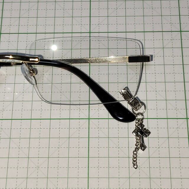 ピアスサングラス 伊達メガネ リムレス フチなし スクエア スクウェア 金 ゴールド ブラック クロスデザイン チェーン フープピアス メンズ レディース ユニセックス 新品未使用品