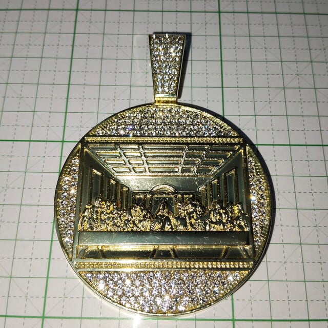 最後の晩餐 レオナルド・ダヴィンチ メダル型 ブリンブリン ギラギラ ゴールド マイアミキューバンチェーン マイアミキューバンリンク ジルコニア CZダイヤモンド ラインストーン ネックレス ペンダント ヒップホップ ラッパー パンク ストリート 14mm×50cm メンズ レディース ユニセックス 新品未使用品