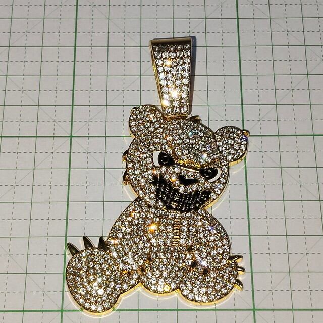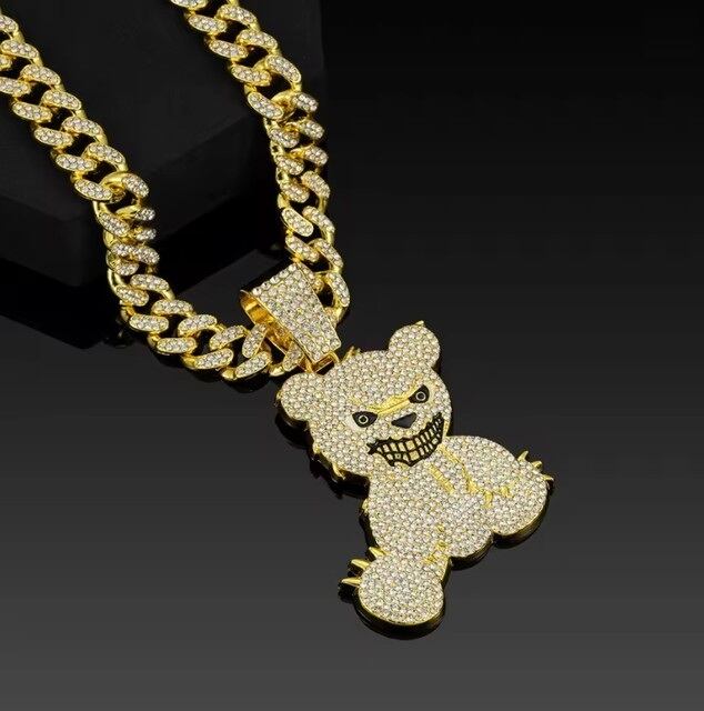 クマ 熊 ブリンブリン ギラギラ ゴールド 金 マイアミキューバンリンク ジルコニア CZダイヤモンド ラインストーン ネックレス ペンダント ヒップホップ パンク ストリート 13mm 50cm メンズ レディース ユニセックス 新品未使用品