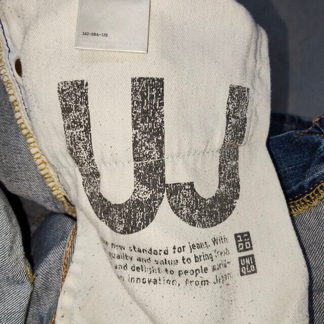 UNIQLO UJ ユニクロ オールドユニクロ S-001 スリムフィットストレートジーンズ デニム ブルー 色落ち 鬼ヒゲ ハチノス 牛革ラベル W35