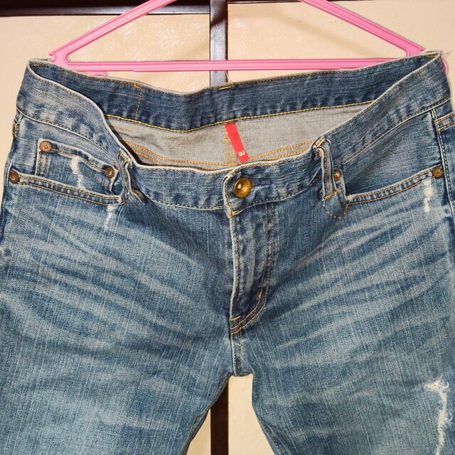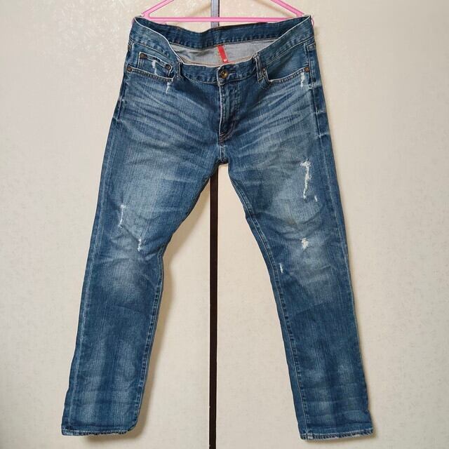 UNIQLO ユニクロ UJ オールドユニクロ 00s S001 ジーンズ デニム スリムフィット ストレート 35インチ ダメージ加工