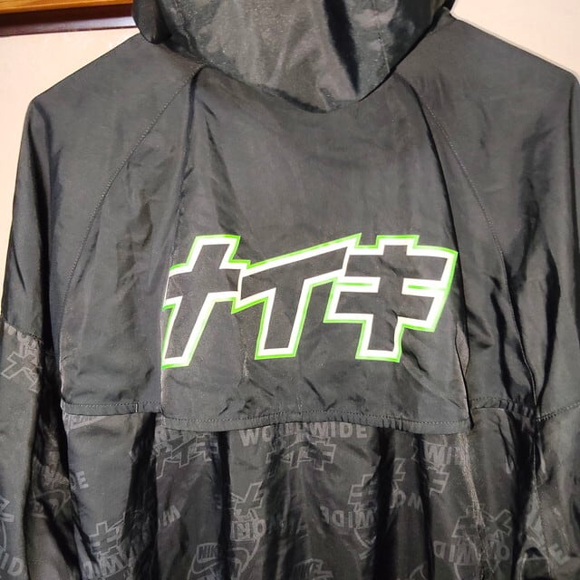 nike ナイキ メンズ ウィンドランナー WORLD WIDE ナイロンジャケット カタカナロゴ 内メッシュ オーバーサイズシルエット ブラック XXLサイズ